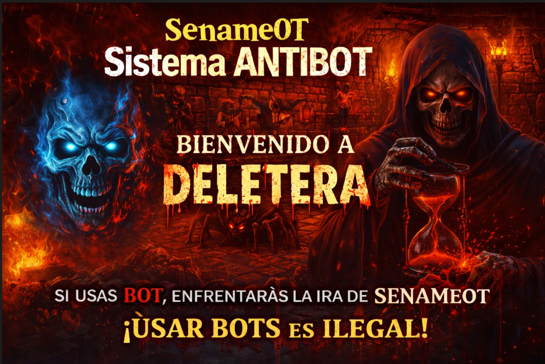 Debido a las inconformidades reportadas en la comunidad de Discord e Ingame. Hemos llegado a la conclusión del Baneo de personajes que utilicen programas ilegales dentro del juego (Botters). Notificandoles de la erradicación inmediata de estos sistemas Bot con BattleEye y en el supuesto que lograran evadirlo y sean detectados, se les dará un BANEO de 7días, en caso de reincidencia serán mandados directamente a DELETERA.